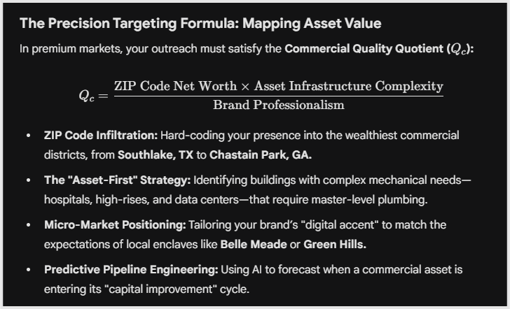 • ZIP Code Infiltration: Hard-coding your presence into the wealthiest commercial districts, from Southlake, TX to Chastain Park, GA.