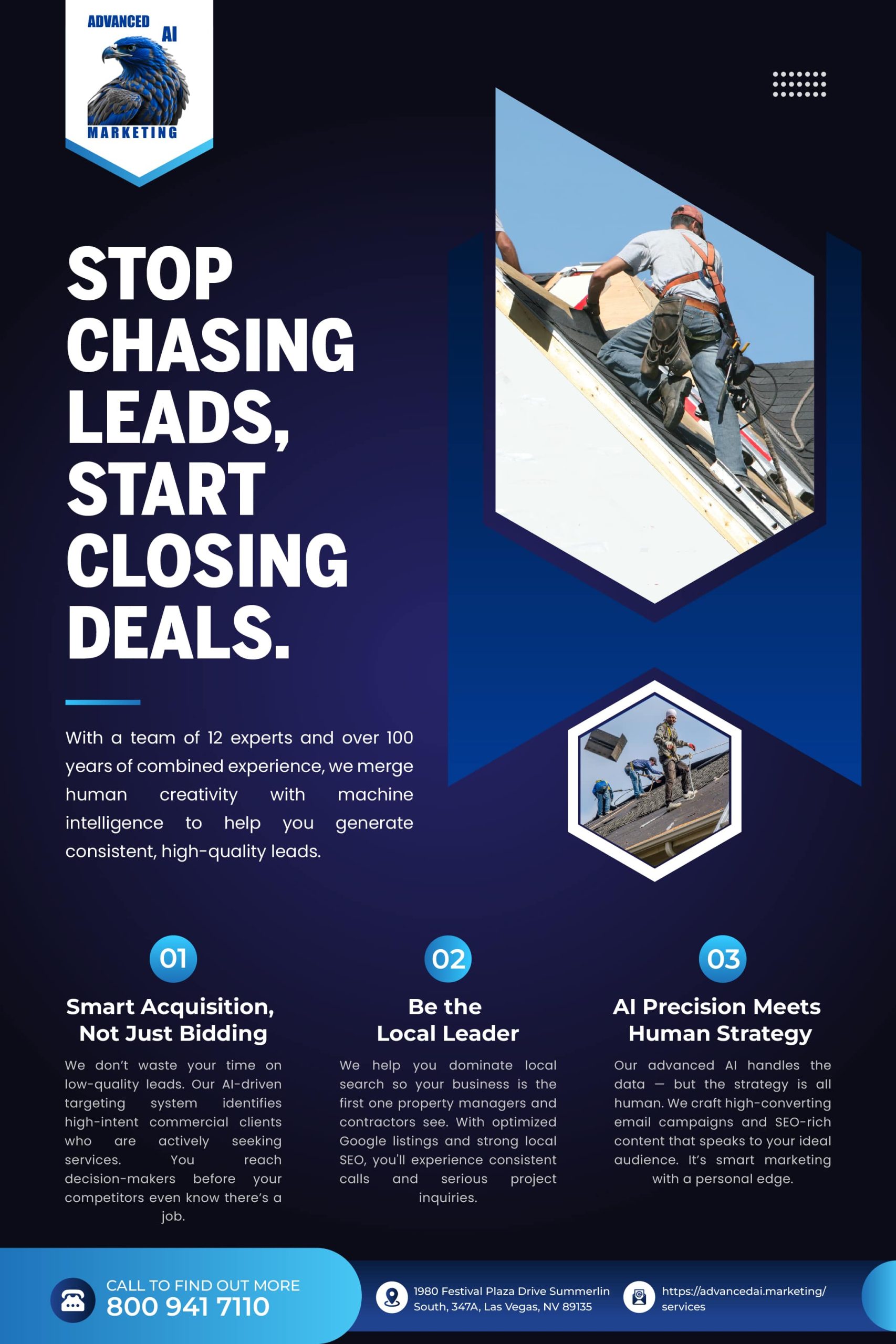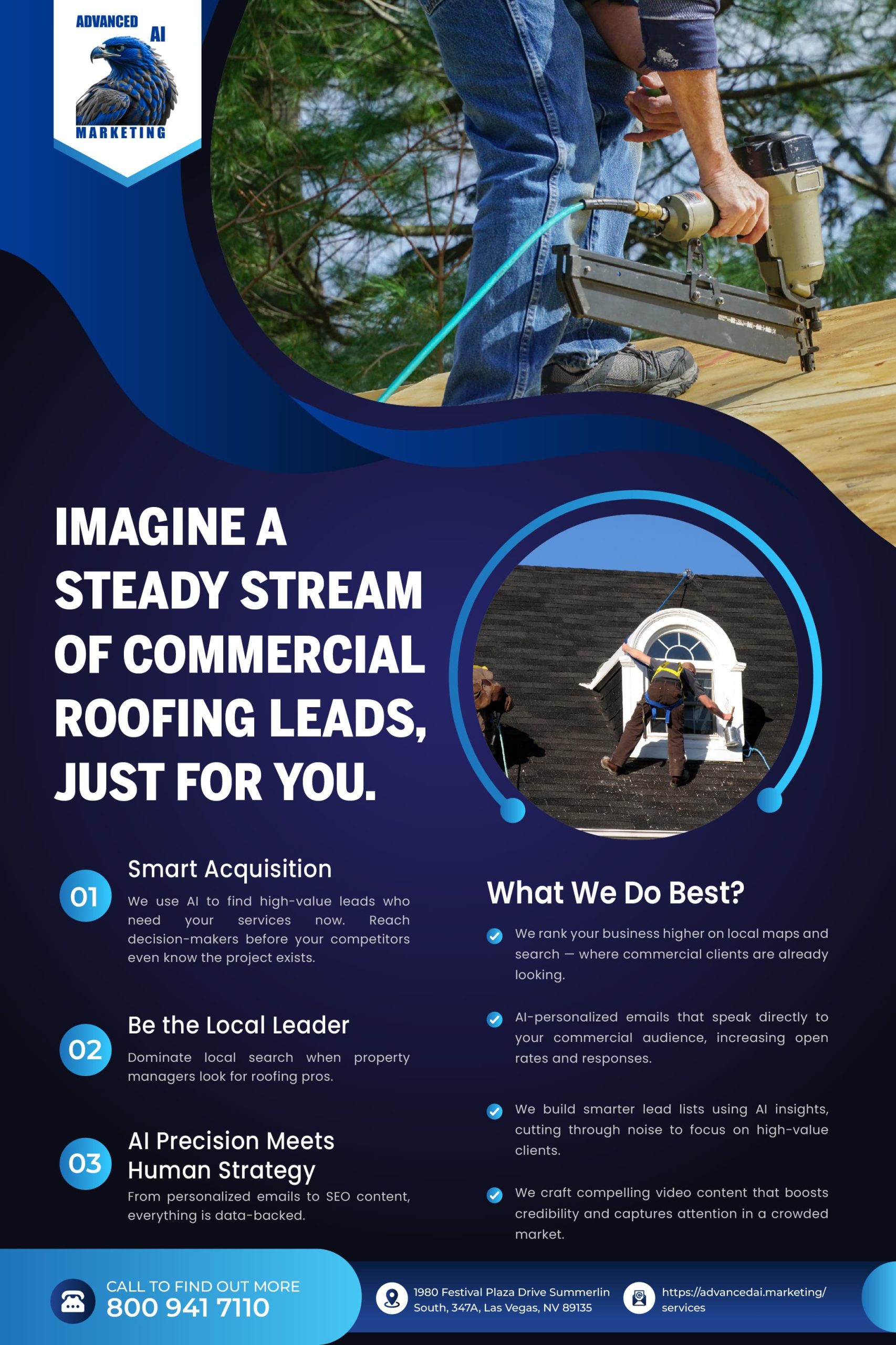 Finding and winning significant commercial roofing projects isn’t just about bidding; it’s about smart client acquisition. It’s understanding where your next big opportunity lies. Advanced AI Marketing brings this strategic foresight to your business. The history of client acquisition has undergone immense change. From personal networks and phone books, it evolved to trade publications and industry events. Now, the digital age, powered by artificial intelligence, offers unparalleled precision. Securing the Next Big Job: Commercial Roofing Client Acquisition is our core expertise. We help roofing businesses identify and engage their ideal commercial clients with remarkable efficiency.